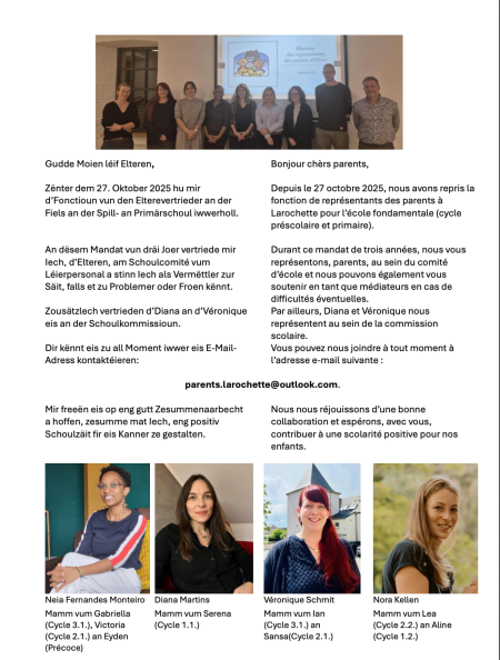 Nouveaux représentants des parents 2025
