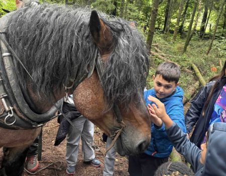 De Cycle 3.2 an de Cycle 4.1 waren an de Bësch dem Päerd beim Schaffen nokucken